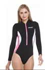 Combinaison tout-en-un pour femme taillée comme un maillot de bain une pièce. Le premier maillot de bain qui offre un bon confort thermique. En néoprène souple 2 mm. Spécialement conçu pour la natation, la randonnée palmée et les sports aquatiques en général, il offre une grande liberté de mouvement grâce à son style spécial et à l'élasticité du matériau. Fabriqué en néoprène doublé deux faces de 2 mm, il dispose d'une glissière devant qui permet de l'enfiler et de le retirer facilement