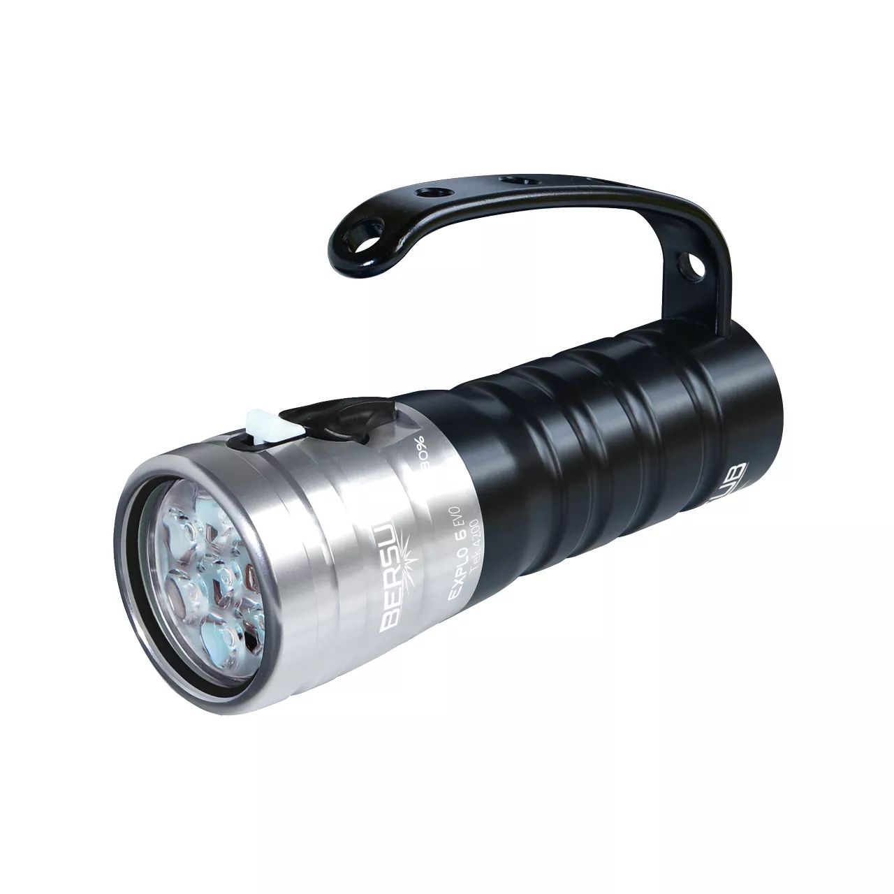 Le phare de plongée Bersub Explo 6 EVO Tek est spécialement conçue pour répondre aux besoins des plongeurs en quête d'éclairages avec un faisceau plus concentré pour les plongées dans les eaux aux conditions de visibilité difficiles.