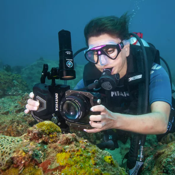 Le mode haute puissance est idéal pour capturer des séquences vives et détaillées, tandis que le mode basse consommation prolonge votre temps sous l'eau sans sacrifier trop de luminosité. Une fonction unique de lumière rouge est incluse pour perturber au minimum la vie marine et pour maintenir les couleurs naturelles de la scène sous-marine.