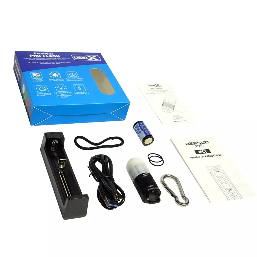 La Pro Flash est rechargeable. Elle est livrée avec une batterie lithium 16340 et son chargeur lithium.