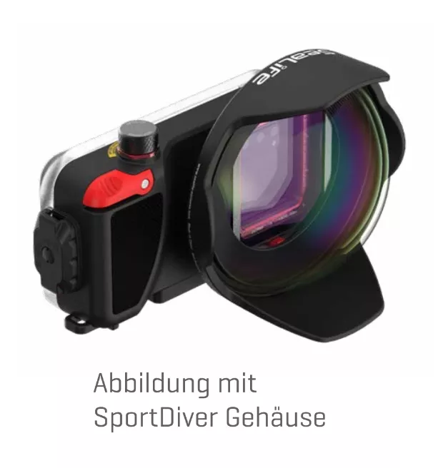 NOUVEAUTE 2025. L'objectif dôme grand-angle de 15 cm pour le boîtier étanche Sealife Sportdiver élargit le champ de vision de l'objectif de 43 % et permet ainsi aux photographes d'être plus près de leur sujet tout en ajustant chaque élément sur le cadre de l'écran. Le nouvel objectif dôme est directement monté sur le support d'objectif du boîtier Sportdiver sans bague d'adaptation.
