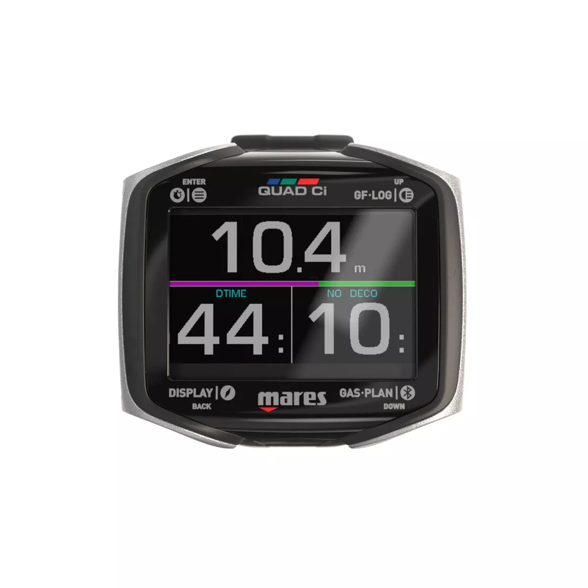 L'ordinateur de plongée avancé QUAD Ci, alimenté par l'algorithme Bühlmann ZH-L16C, vous permet d'adapter chaque plongée à vos besoins. L'écran MIP vibrant à 8 couleurs fournit des informations complètes en un coup d'oil et vous guide de manière transparente à travers les modes de plongée polyvalents, de l'Air au Nitrox en passant par Trimix. La boussole numérique intégrée vous permet de naviguer en toute sécurité, tandis que l'intégration des données du réservoir tubeless et des informations de plongée en temps réel améliore la surveillance. Avec une capacité de journal de bord de 100 heures, une gestion intelligente de la batterie et une connexion Bluetooth conviviale, l'ordinateur de plongée Mares Quad CI est votre partenaire fiable pour explorer le monde sous-marin et vous offre des performances maximales à chaque plongée.