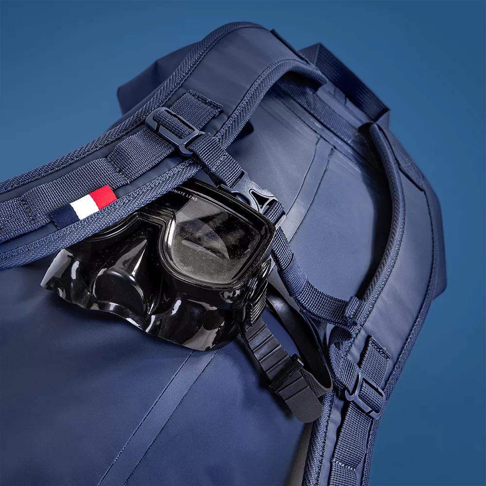 Tel un verseau qui porte l'eau, inspiré du sac porté par plusieurs générations de marins, le sac étanche Verseau revisite avec une touche contemporaine et technique un accessoire ancré dans la tradition marine.