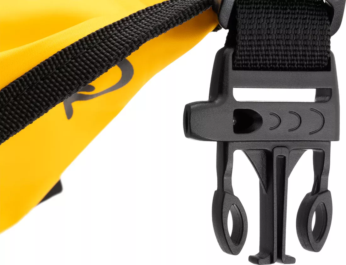 Sautez d'une île à l'autre, nagez le long de la côte ou plongez au clair de lune. Où que votre aventure vous mène la bouée de natation Glide Pro vous aide à rester visible en toute sécurité en gardant vos objets personnels au sec. Fabriquée dans un matériau jaune résistant et très visible cette version améliorée de la bouée de natation Glide standard est conçue pour les nageurs en eau libre qui ont besoin d'en savoir plus sur leur équipement. Deux chambres à air indépendantes dotées de leur propre valve externe pour un gonflage facile ajoutent une possibilité de flottabilité complémentaire au cas où l'une d'elles se dégonflerait. Les parois des chambres créent un compartiment central étanche entre elles avec un dessus enroulable et une fermeture à pince. Cela forme une poche étanche idéale pour ranger des lunettes de rechange, des clés de voiture, une bouteille d'eau ou un traceur GPS. En cas de faible luminosité vous pouvez glisser une lampe de poche à l'intérieur pour augmenter encore votre visibilité. La sangle abdominale réglable avec lanière maintient la bouée bien attachée à vous et un sifflet est intégré à la boucle supérieure pour effectuer des signaux d'urgence. Conçu pour les nageurs qui vont plus loin le Glide Pro offre une sécurité maximale combinée à une fonctionnalité adaptée à l'aventure.