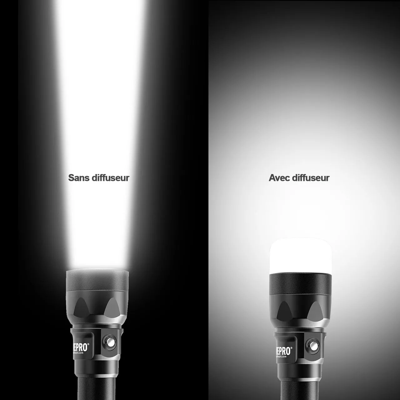 plongées en épaves, cave.ou tout simplement pour avoir une lumière plus douce que le faisceau concentré. Il est aussi possible de l'utiliser en extérieur (à basse puissance), sur un bateau. pour avoir un éclairage d'ambiance large. Et il peut aussi faire office de flasher avec le diffuseur, sur le mode Stroboscopique, SOS ou Flash (60 impulsions / minute). Le diffuseur est dévissable à tout moment. Son rapport poids/puissance est excellent. Elle est très compacte et développe 4200 lumens