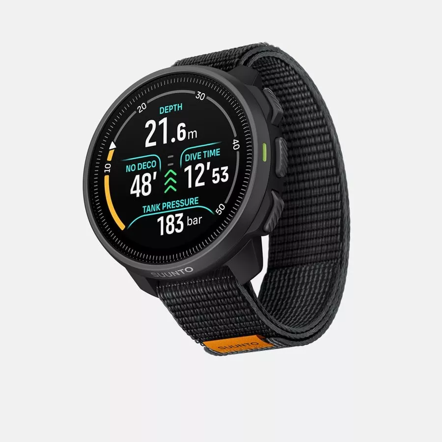 Sa conception durable et résistante à la pression et son écran AMOLED lumineux garantissent une visibilité claire et une plongée en toute confiance. Le nouveau bracelet textile élastique offre un confort et une flexibilité supérieurs, s’adaptant à toutes les combinaisons de plongée et à toutes les conditions.