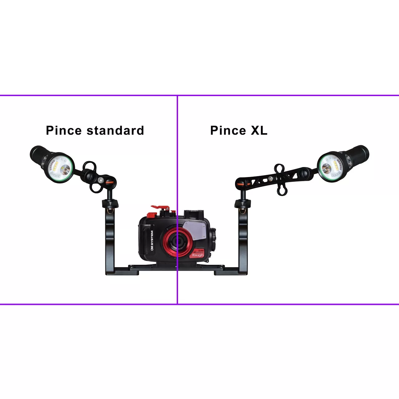 Compatible avec la plupart des bras carbone, bras aluminium et autres types de montages pour caisson photo ou caméra Gopro étanche.